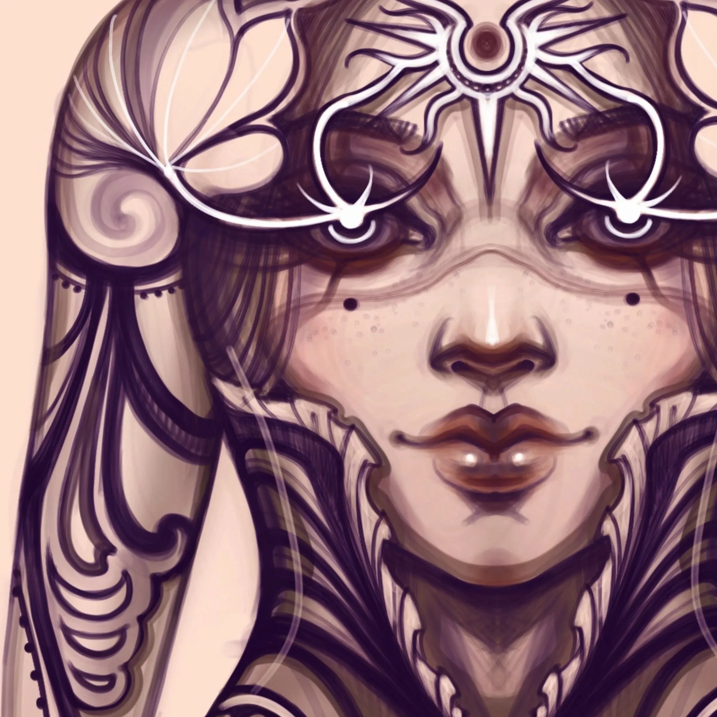 I draw inspirations from modern and old worlds, classical painting, as well as gothic and dystopian aesthetics, art nouveau, pagan witchery and dark fantasy, cyberpunk, post-punk music, philosophy, literature, and visual storytelling in games and cinema.
